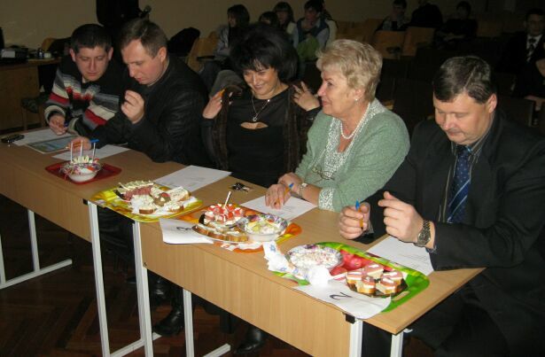 А щоб ще більше привабити глядачів, в рамках концерту було проведено конкурс "Міс Чернігів Європейський". Чотири чарівні дівчини змагались за цей титул. Строге журі у складі директора та викладачів філії прискіпливо оцінювало конкурсанток. Дівчата представляли себе, розказували про те, якою повинна бути сучасна успішна жінка, та, на радість журі, готували. Готували оригінальні страви в конкурсі "Незваний обід". Маю сказати, що всі учасниці настільки оригінально вийшли з ситуації, коли "у вас через 10 хвилин гості, а в холодильнику …" Коротше кажучи, маючи обмежений набір продуктів, дівчата мали здивувати журі та глядачів - і здивували.
